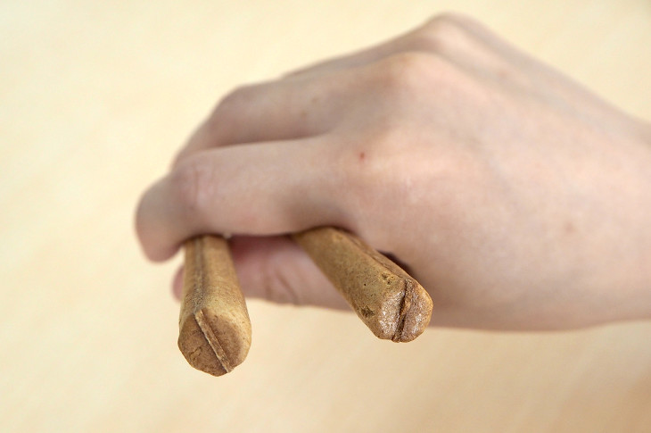 太めなのでがっしりした見た目で、遠目だと普通のお箸に見えますね。