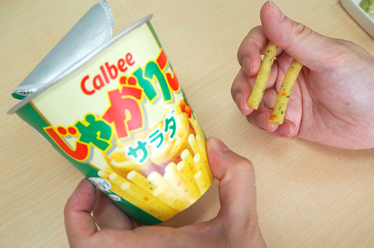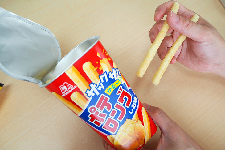 ある程度の強度と長さがあるお菓子ということで、まっさきに思い浮かんだじゃがりこですが