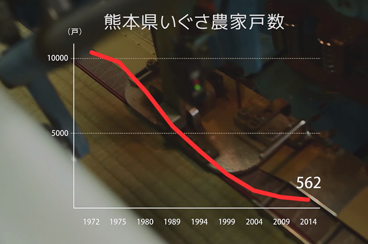 しかし畳の需要は減り続け、1970年台には1万戸程だった熊本県のいぐさ農家もの残り500戸程となってしまいました。