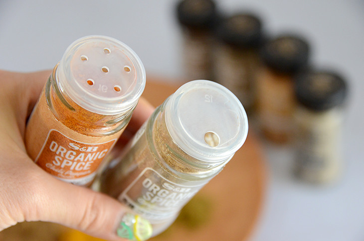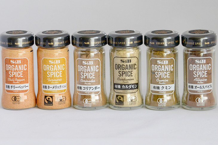 透明の瓶に黒のキャップ、ナチュラルなカラートーンで統一感のあるスタイリッシュなデザインに惹かれ、エスビー食品から発売されている「ORGANIC SPICE(オーガニックスパイス)シリーズ」で揃えてみました。