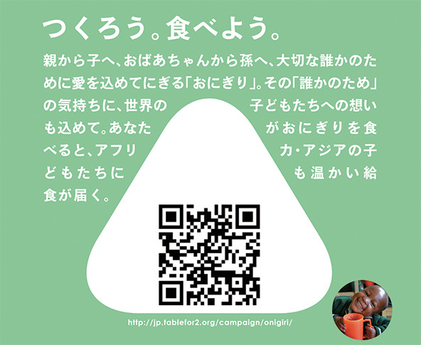 「おにぎりアクション」は、私たち日本人にとって身近な“おにぎり“を通じて、アフリカ・アジアの子どもたちに給食を届けるアクションです。