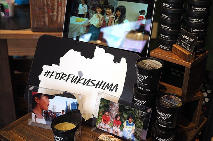 「TODAY IS THE DAY FOUNDATION」による展示ですよ、と店員さんが教えてくれました。同団体は、ラッシュのパートナー団体として渋谷駅前店に招かれた草の根団体です。