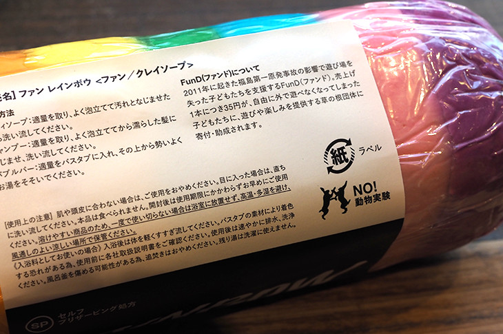 こちらのワークショップに使われている「ファン レインボウ」も寄付つき。1本につき35円が福島第一原発事故の影響を受けた子どもたちに遊びや楽しみを提供する活動をしている草の根団体に寄付されます。