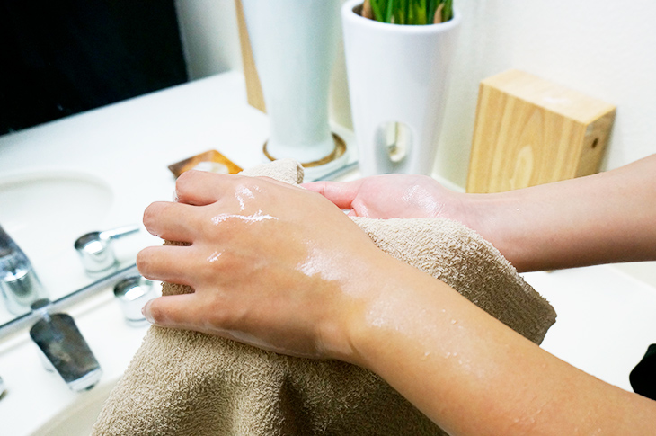 それでは、水で濡らして泡立ててみましょ~♪