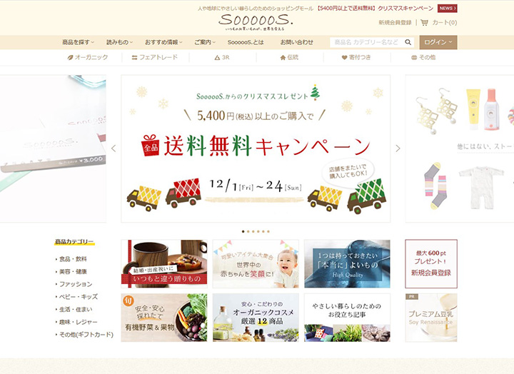 食品からコスメ、アパレル、生活雑貨まで、とにかく商品数が豊富なので、欲しいものがきっと見つかる!商品ストーリーも添えてプレゼントするとセンスましまし!2017.12.24(日)まで購入に応じて送料無料になるクリスマスキャンペーン実施中。