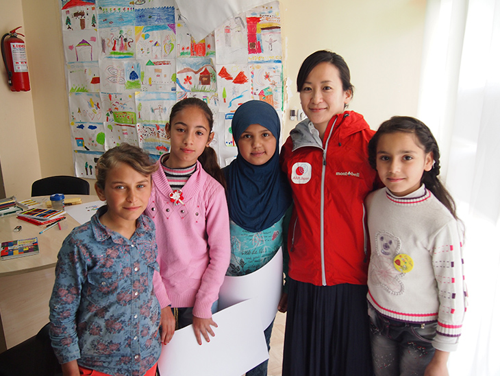 隣国トルコに逃れてきたシリア難民の子どもたちに居場所を提供する支援では、AARの駐在員さんが一緒にお絵描きをするなど、子どもたちの笑顔を増やす活動をしています。