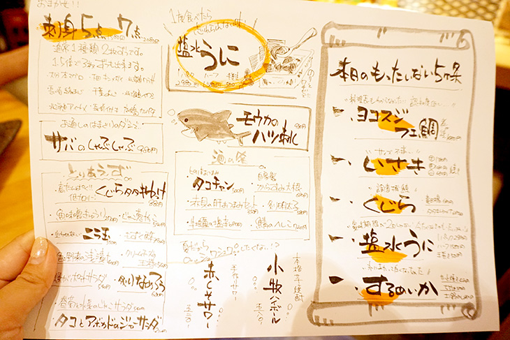 1枚目。右側にあるのが「本日のもったいない5か条」。