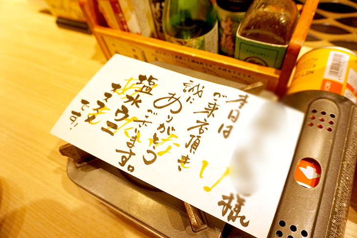 予約席にはこんな素敵なお手紙が。こんなところまで手間がかかってる…