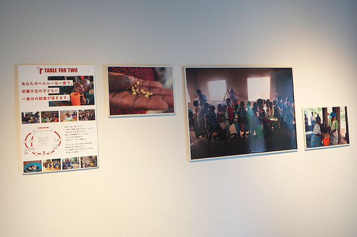 先進国の私たちと開発途上国の子どもたちが食事を分かち合うというコンセプトのもと、TABLE FOR TWOプログラムを運営。社員食堂や店舗でTFTマークのついたヘルシーメニューを注文すると、1食につき20円が途上国の子どもの学校給食になるという仕組み。