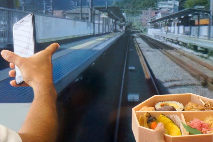 電車の中でしか食べられない特別な存在に一礼する。