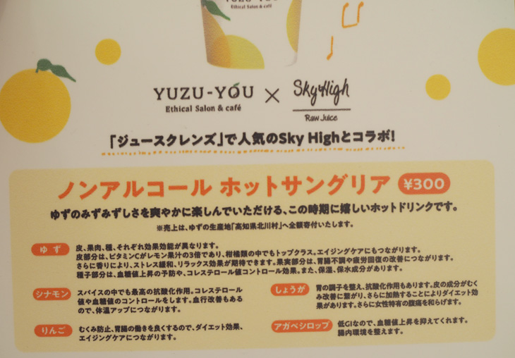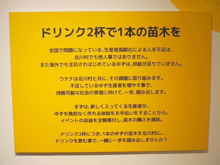 ちなみに、オリジナルドリンク2杯でゆずの苗木約1本の購入資金となるそうです。
