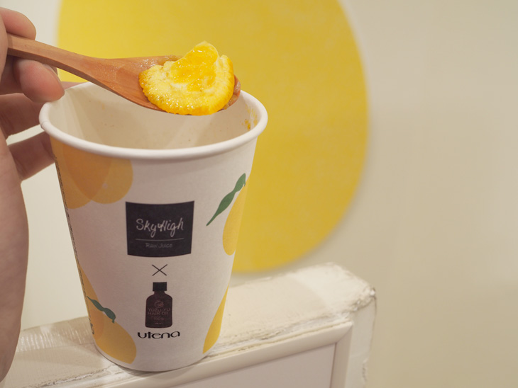 「ジュースクレンズ」で人気のSkyHighとコラボして生まれたこのオリジナルサングリアの中には、ゆずを中心とした果実がこれでもかという程ゴロゴロ入っています。